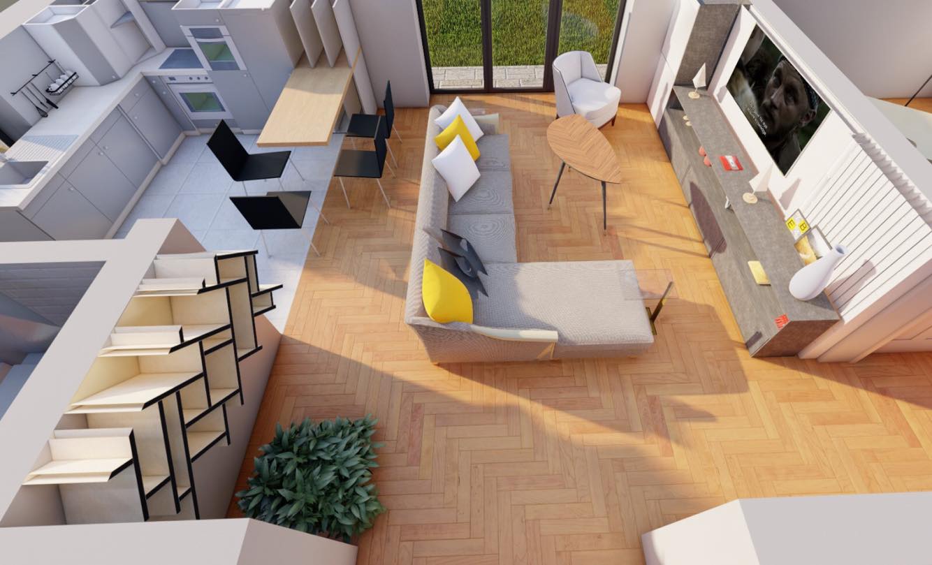 Living/Bucătărie: open space sau separat in funcție de preferințele clientului